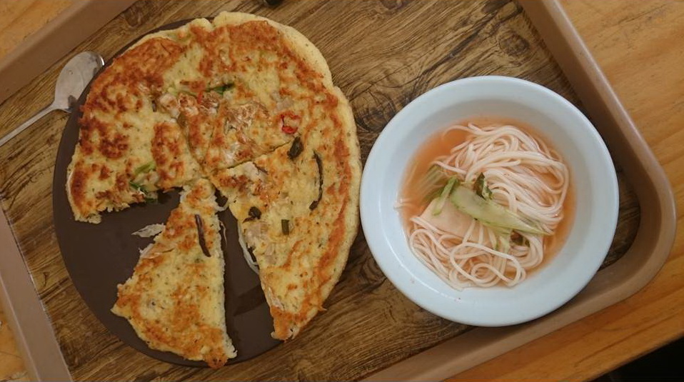 Lepényt (nogdubindaebag - 녹두빈대박) és levest kértünk. Egyszerű és finom volt.